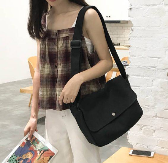 View All / 韓國文藝帆布手提斜背兩用素色銅釦側背包