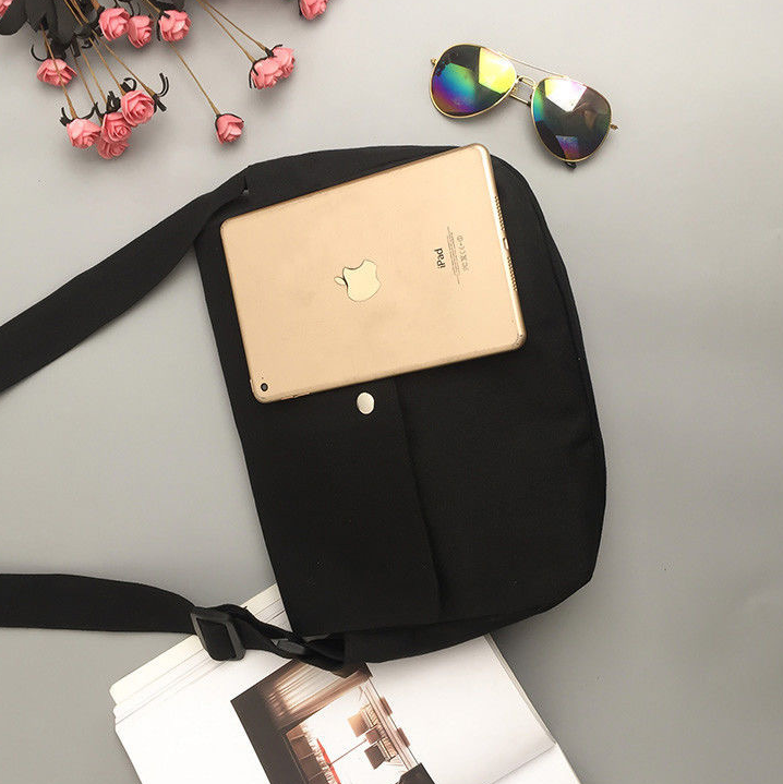 韓國文藝帆布手提斜背兩用素色銅釦側背包