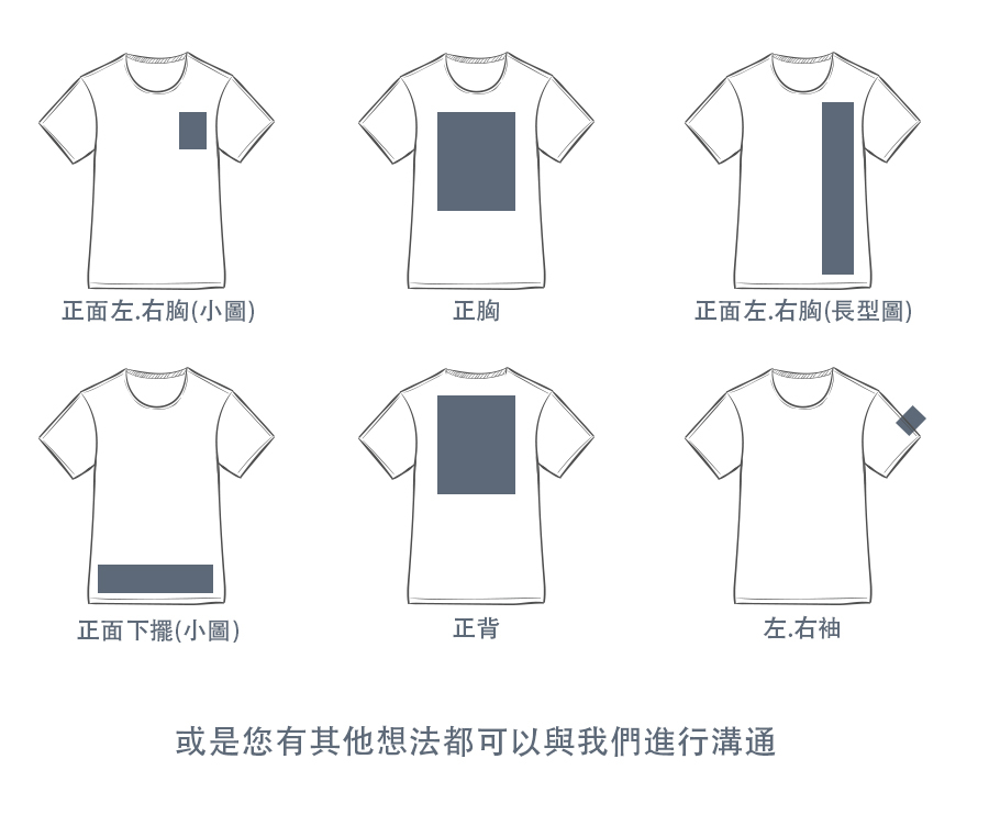 | A5印圖 | A4印圖 | A3印圖 | 衣服尺寸2XL以上+20元/件 量大更優惠 | ||||