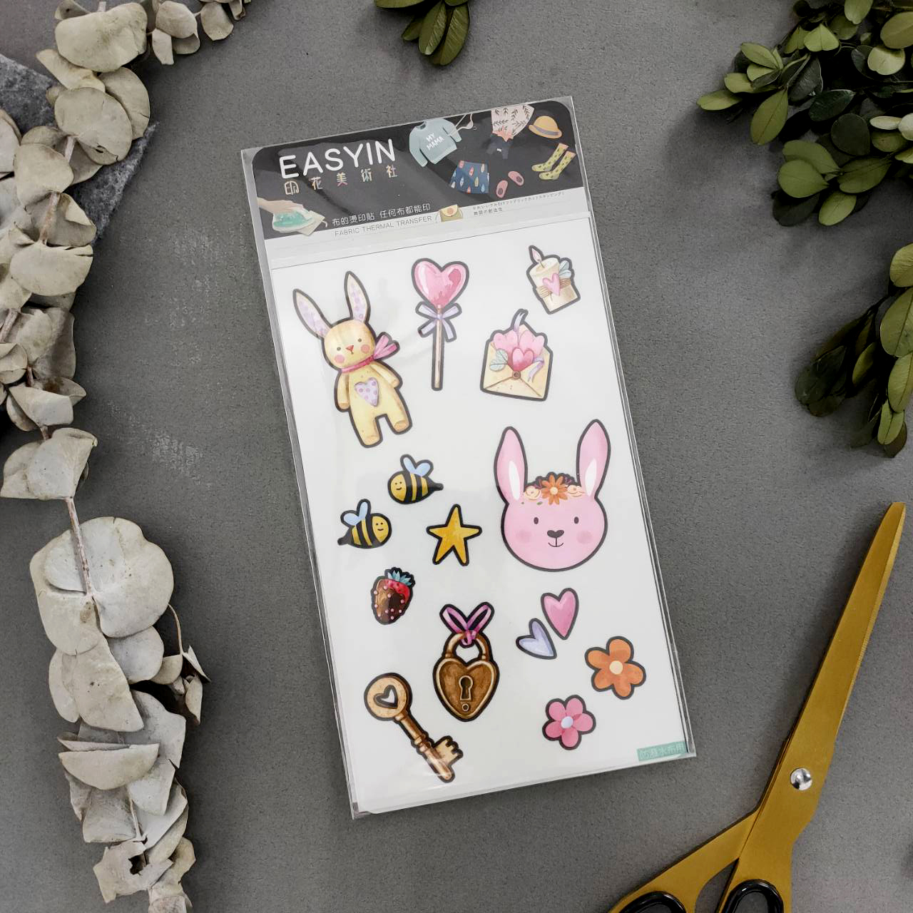 以熨斗約150度熨燙10-15秒,可依照圖案大小來回按壓移動,