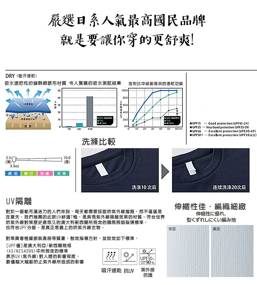 吸濕速乾排汗抗紫外線
