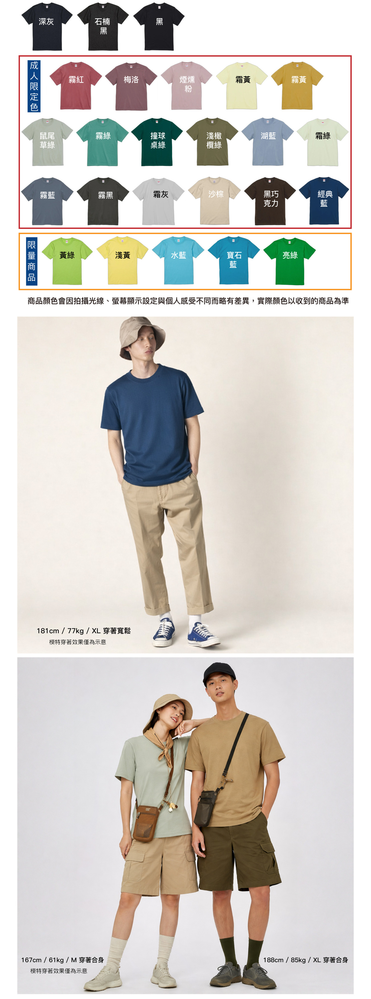 -5.6 oz 17支棉 -麻灰色:90%綿,10%聚酯纖維 -白灰色:98%綿,2%聚酯纖維 -燕麥色:99%綿,1%聚酯纖維
